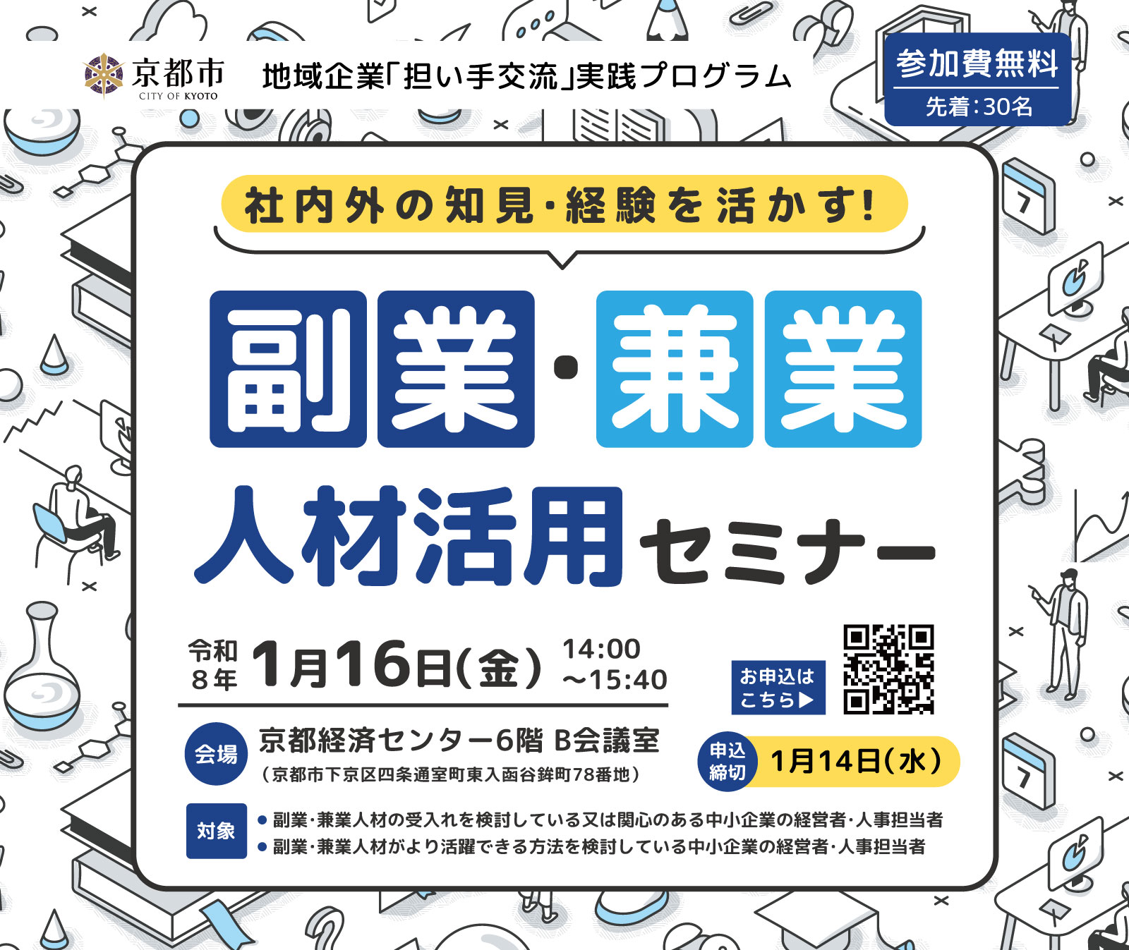 セミナー人材不足副業・兼業※終了しました※【参加募集】京都企業の事例に学ぶ! 副業・兼業セミナー 9月9日(火)開催 ※終了しました※【参加募集】京都企業の事例に学ぶ! 副業・兼業セミナー 9月9日(火)開催
